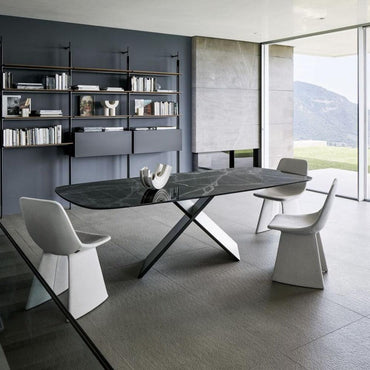 AX 250 Table Glossy Ceramic Calacatta Top,Matt Anthracite Grey Legs T132 - Stock availability is subject to reconfirmation / (Pictures attached are for illustration purposes only) Product finishing and details are as per the description stated