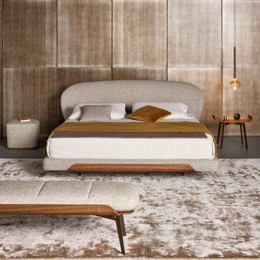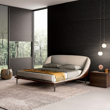 Olos Bed 180x200cm w Sole Slat Cat 800 Fabric 8D57 Ven.Wood Canaletto Walnut Frame Bronze Ft L6X8+ZRM8 / (Pictures attached are for illustration purposes only) Product finishing and details are as per the description stated
