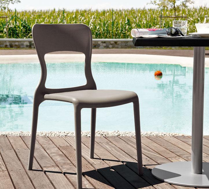 HELIOS chair with polypropylene frame. Polypropylene reinforced with invisible glass fibre and moulded for a product that is pleasant, functional and ergonomic. Stackable up to 10 chairs high.